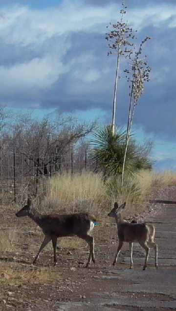 While we were walking on the outskirts of Portal one morning these two deer came clattering down the road. They walked into a nearby track then disappeared into the undergrowth.