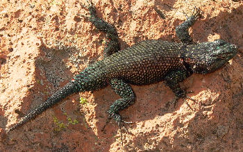 Lizards can be seen basking in the sun on the rocky sides of the canyon. They come in a variety of colours and can be seen chasing and occasionally fighting each other.