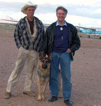 The first time we visited Rodeo airport there seemed to be no-one around except for a very large german shepherd running loose. He tunred out to be a big friendly softy by the name of Taggart. As we made friends with him Rick Chamberlain appeared and made us welcome. If you visit the airport for one of Rick's (very reasonably priced) aerial tours you'll get to meet Taggart.