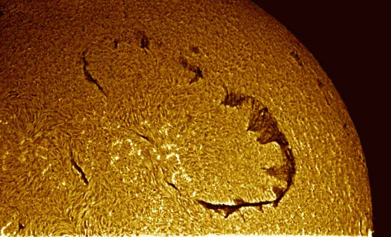 Taken by Gene Turner using a hydrogen-alpha telescope from Solarscope in the Isle of Man